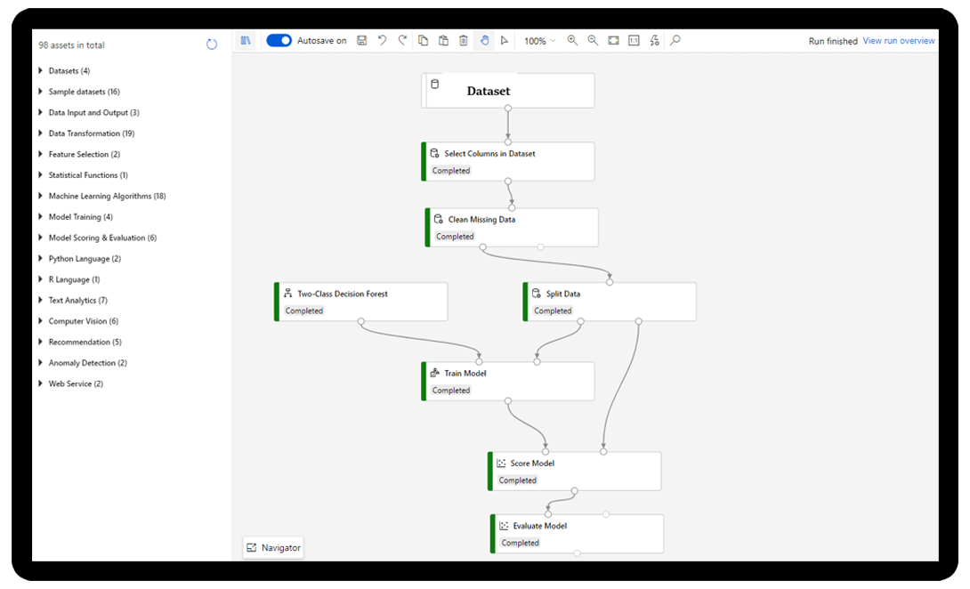 - El diseñador sin programación le permite empezar a trabajar con aprendizaje automático visual y los cuadernos de Jupyter de colaboración integrados le dan una experiencia prioritaria a la programación.