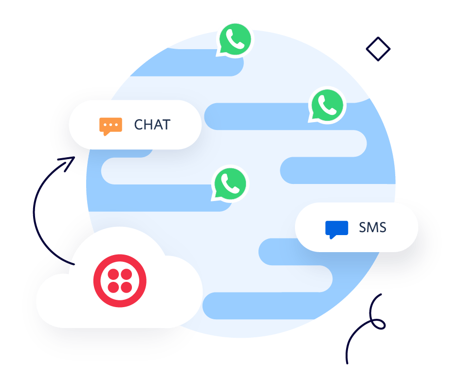 Envíe mensajes de WhatsApp de forma sencilla y segura con las API de Twilio. Integre WhatsApp y otros canales de comunicación como SMS y MMS con la API de mensajería programable, o organice interacciones multicanal y entre varias partes mediante la API de conversaciones.